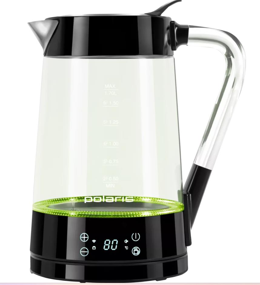 Электрический чайник Polaris PWK 1715CGLD WIFI IQ Home (2200 Вт/1,7 л /стекло, пластик/прозрачный, черный) - Интернет-магазин Позитив: бытовая техника, электроника, товары для дома и др.