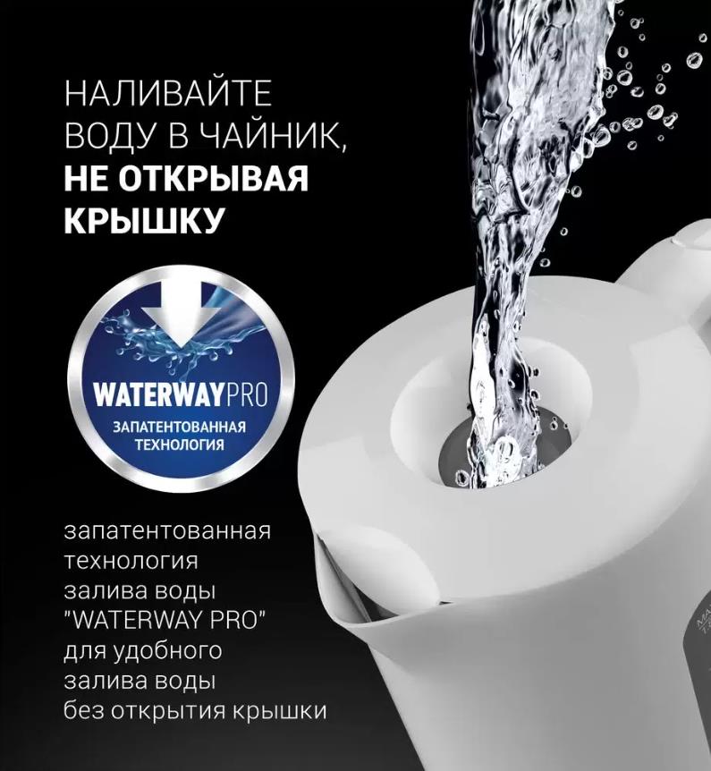 Запатентованная технология “WATERWAY PRO” – наливайте воду в чайник без открытия крышки. Английский контроллер Strix обеспечивает 15 000 циклов кипячения, что равно 10 годам интенсивного использования.