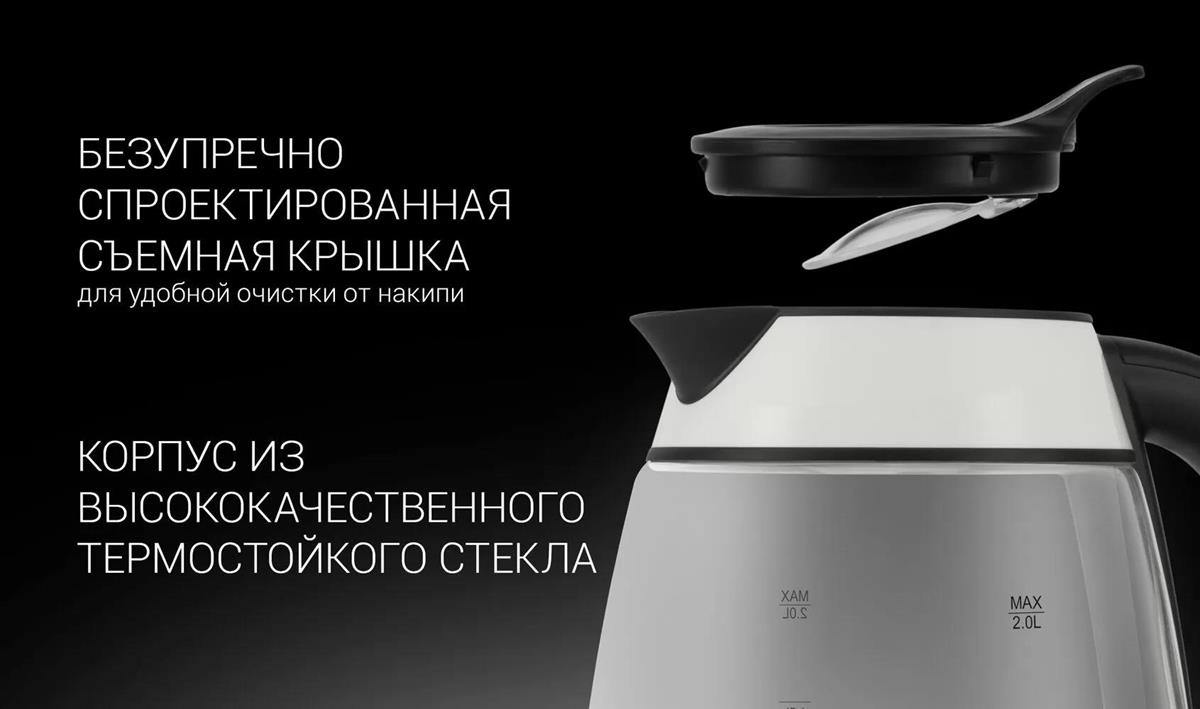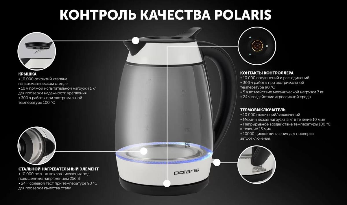 Электрический чайник Polaris PWK-2092СGL (2200 Вт/2 л /стекло/прозрачный, белый, черный) - Интернет-магазин Позитив: бытовая техника, электроника, товары для дома и др.