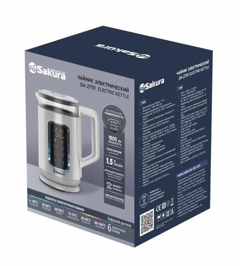 Электрический чайник Sakura SA-2751DW (1800 Вт/1,5 л /стекло, металл, пластик/белый) - Интернет-магазин Позитив: бытовая техника, электроника, товары для дома и др.