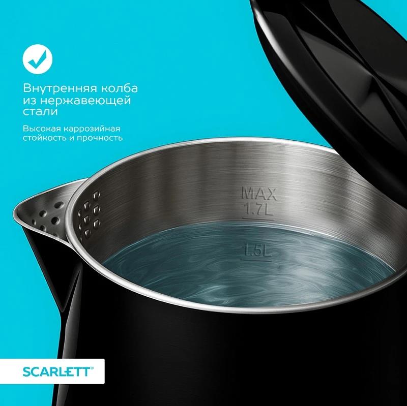 Электрический чайник Scarlett SC-EK21S66 (2200 Вт/1,7 л /металл, пластик/черный) - Интернет-магазин Позитив: бытовая техника, электроника, товары для дома и др.