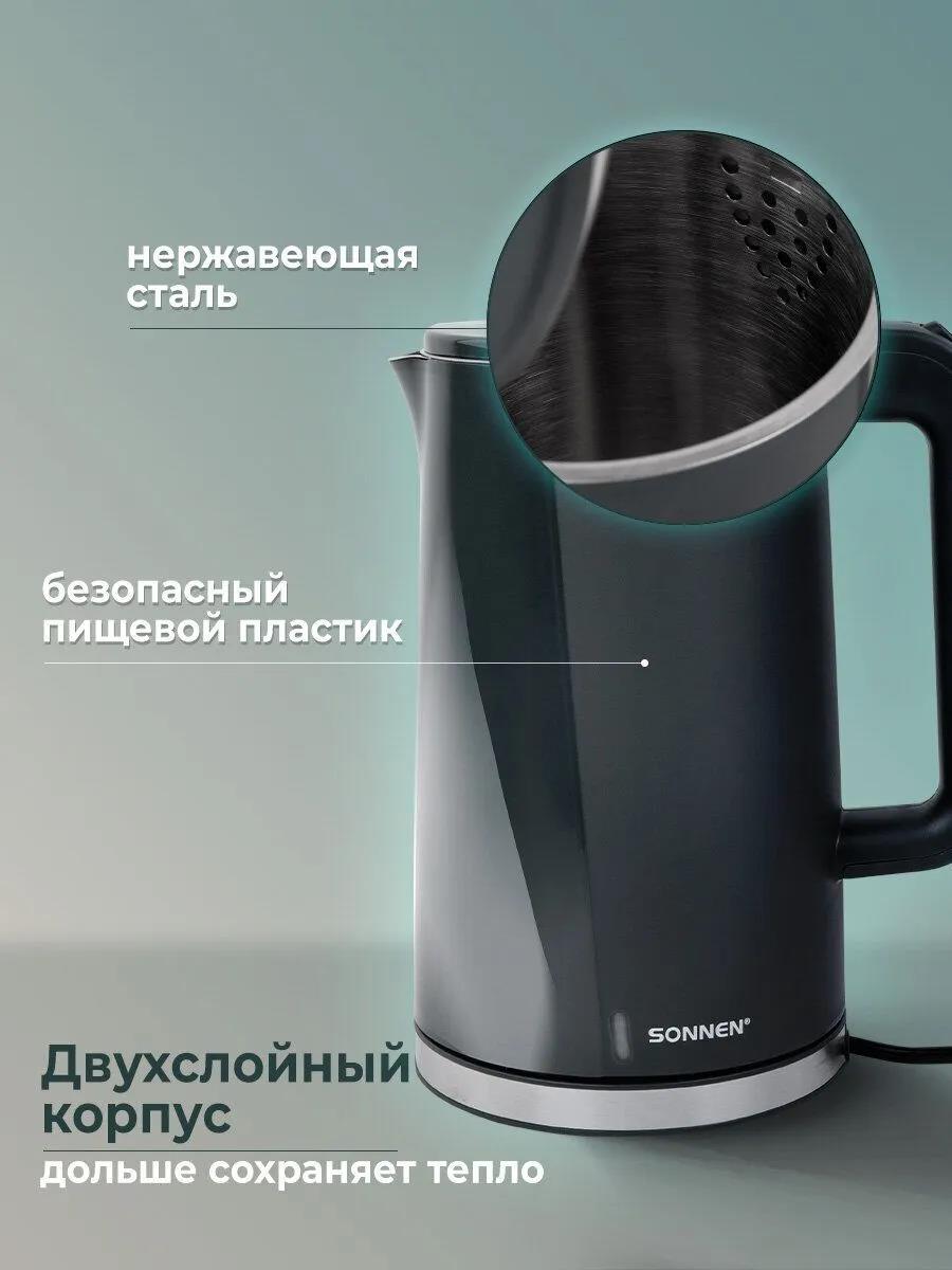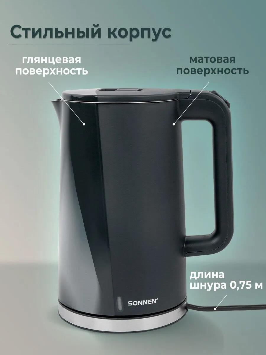 Электрический чайник Sonnen KT-8718B (2200 Вт/1,7 л /пластик, нержавеющая сталь/графит) - Интернет-магазин Позитив: бытовая техника, электроника, товары для дома и др.