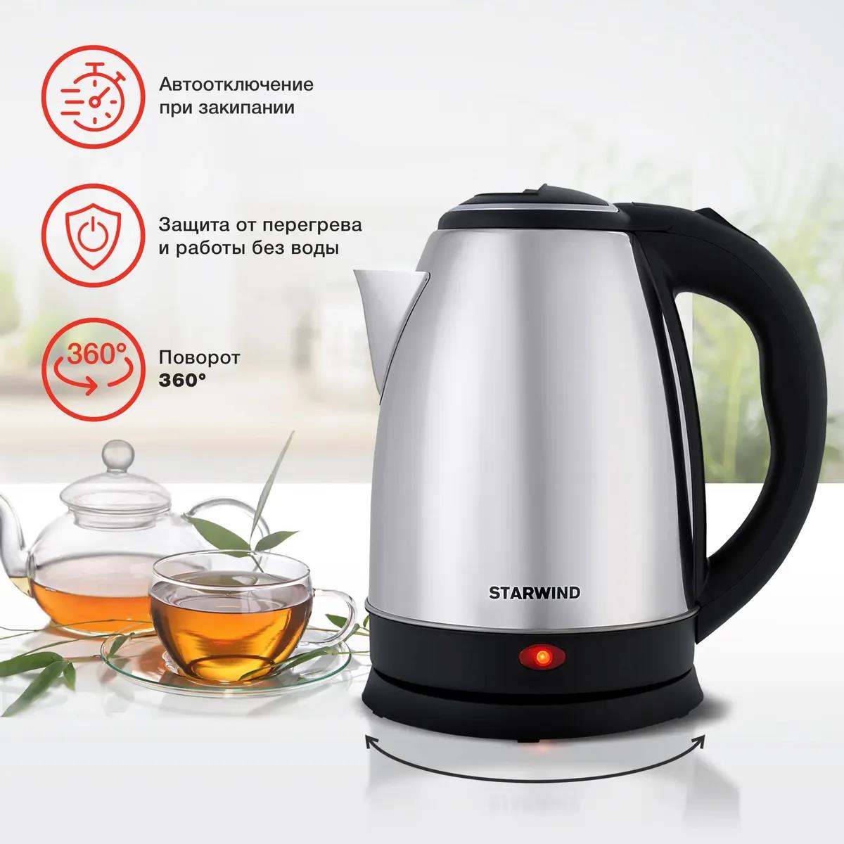 Электрический чайник STARWIND SKS1771 (1700 Вт/1,8 л /металл, пластик/черный, серебристый) - Интернет-магазин Позитив: бытовая техника, электроника, товары для дома и др.