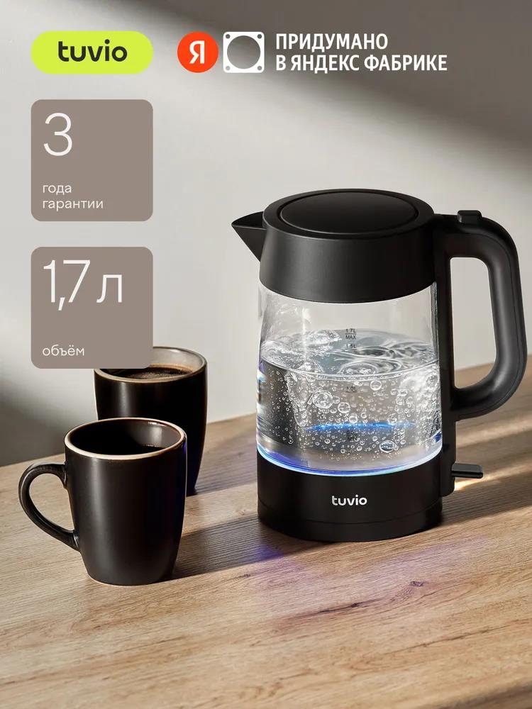 Электрический чайник Tuvio TKG0117 (2200 Вт/1,7 л /стекло, пластик/прозрачный, черный) - Интернет-магазин Позитив: бытовая техника, электроника, товары для дома и др.