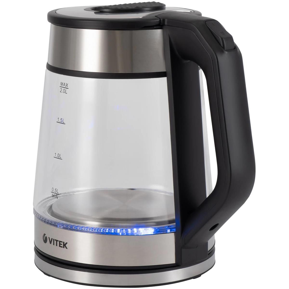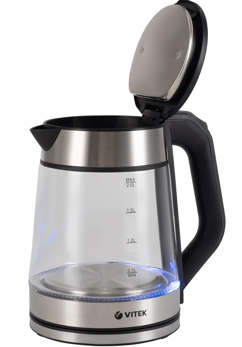 Электрический чайник VITEK VT-1176 (2200 Вт/2 л /стекло/прозрачный, черный, серебристый) - Интернет-магазин Позитив: бытовая техника, электроника, товары для дома и др.
