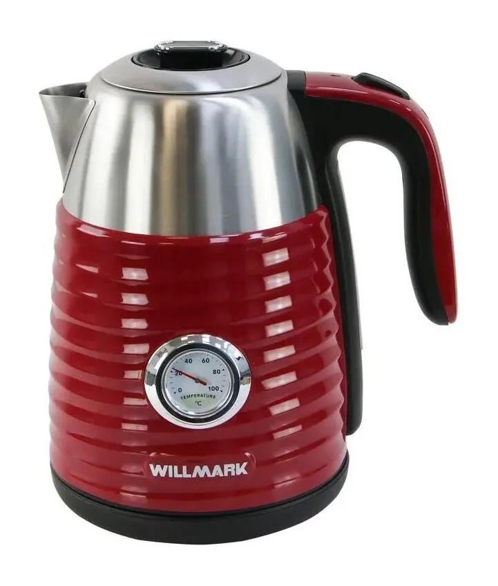 Удобен в эксплуатации, позволяет легко контролировать температуру воды благодаря встроенному термометру. Чайник электрический WEK-1738PST имеет двухстенную конструкцию, в которая наружняя часть выполнена из экологически безопасного пищевого пластика, внутренняя - из нержавеющей стали. Чайник WILLMARK WEK-1738PST современный чайник с удобной ручкой, мощностью 2200Вт, увеличенным объёмом 1,7 литра, с закрытым нагревательным элементом из нержавеющей стали. Благодаря такой конструкции наружная поверхность чайника не нагревается, о него невозможно обжечься, а при нагреве воды существенно снижается уровень шума.