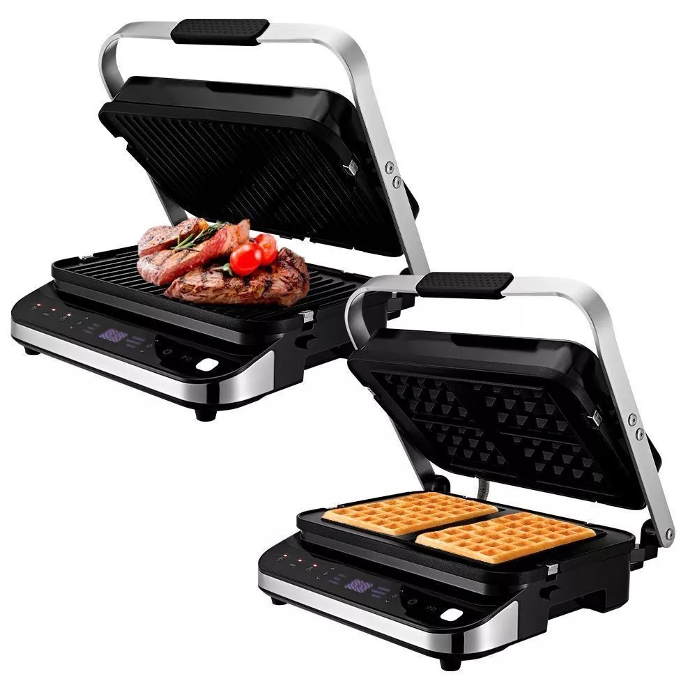 Электрогриль «2 в 1» предназначен для приготовления мяса, рыбы, овощей, сосисок, бутербродов и многих других блюд. Высокая температура способствует быстрому приготовлению продуктов, а ребристая поверхность панелей – появлению «полосатого» рисунка.