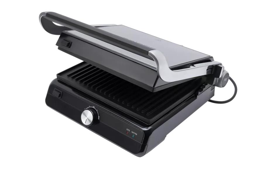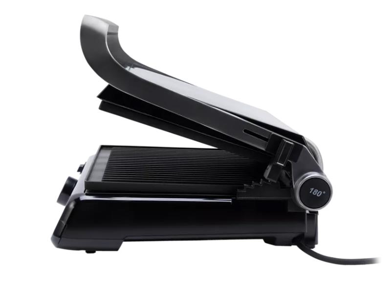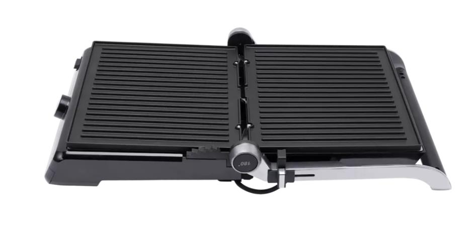 3 в 1: Гриль, Мини-печь, Барбекю. Плавная регулировка температуры - от 80 до 240⁰ C. 2 съемные панели с антипригарным покрытием BIOTORE. Мощность: 2000 Вт. Возможность использования в открытом положении. Рабочие поверхности раскрываются на 180⁰. Размер панелей: 29х26 см. Кнопка высвобождения панелей для удобства использования. Рифленые панели способствуют равномерной прожарке. Рабочие поверхности имеют каналы для стекания жира в поддон. Лопатка для очистки панелей в комплекте. Регулировка высоты верхней панели.