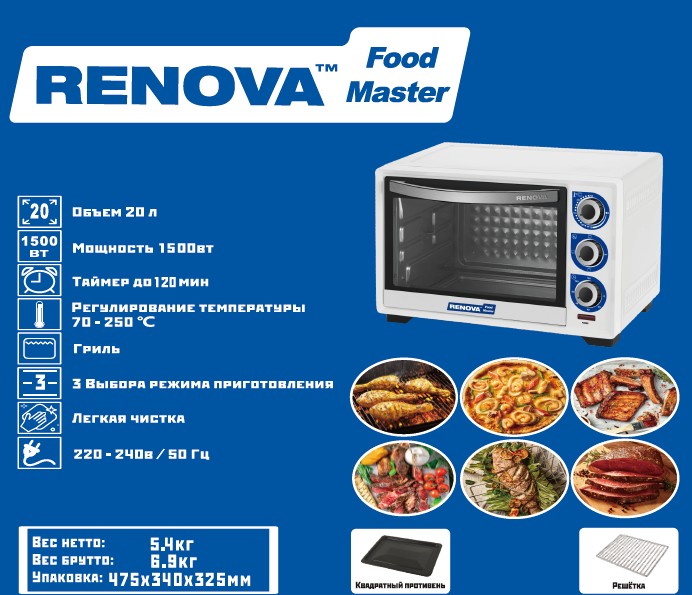 Мини-печь Renova MO-20GTW1 - идеальное решение для приготовления вкусных блюд в домашних условиях.