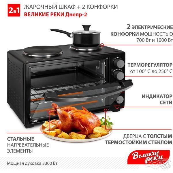 Электропечь Великие реки Днепр-2, мощность 3300 Вт, 2 конфорки, 30 л, 2 противня (30 л /3300 Вт /черный) - Интернет-магазин Позитив: бытовая техника, электроника, товары для дома и др.