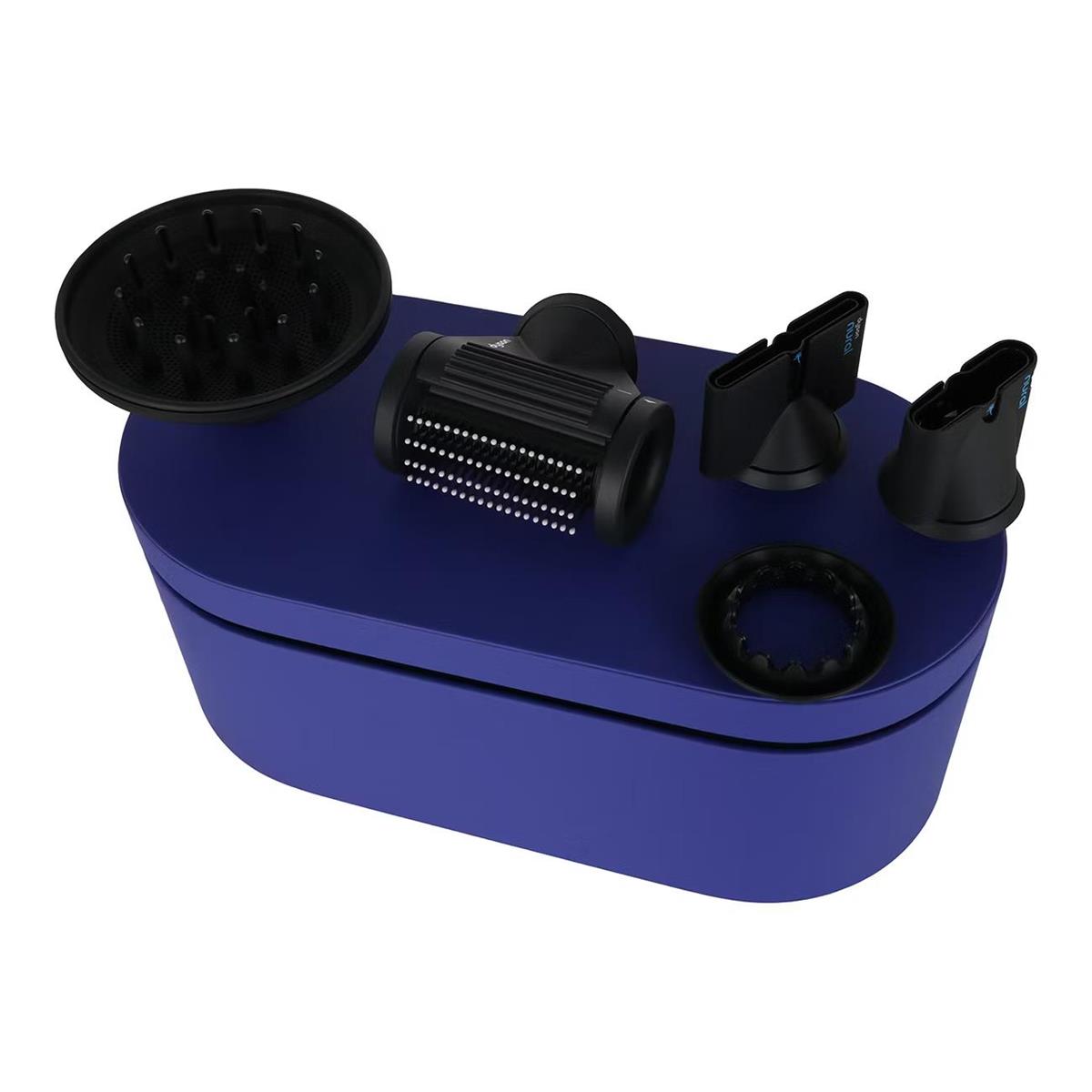 Фен Dyson Supersonic HD16 Vinca Blue Topaz Orange (+ кейс) мощностью 1600 Вт оборудован двигателем, который способен развить до 110000 об/мин. • Четыре режима нагрева воздушного потока Предусмотрена возможность регулировки температуры и функция холодного обдува. На корпусе расположен индикатор выбранного режима. Мощность воздушного потока регулируется в пределах трех режимов. • Пять насадок Крепятся на корпус устройства при помощи магнитного модуля. Предусмотрено наличие диффузора и насадки-концентратора шириной 40 мм. • Безопасная эксплуатация Автоматического отключение устройства произойдет при возникновении перегрева. Съемная защитная решетка позволяет устранить внутренние загрязнения. Полный комплект включает в себя кейс для хранения. Габаритные размеры модели — 24,5х7,8х9,7 см, вес — 560 г. Устройство выполнено в синем и оранжевом цветах.