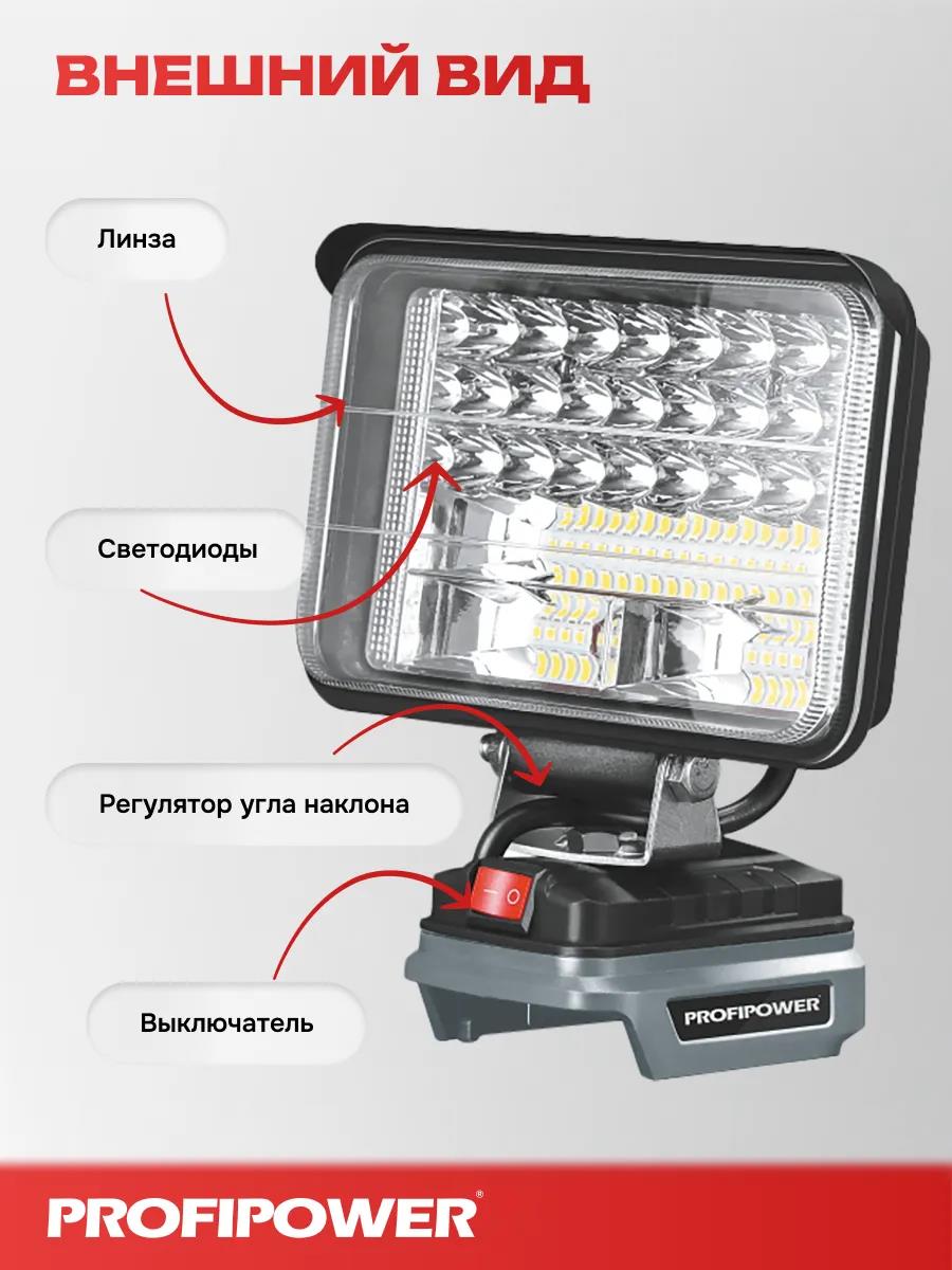 Фонарь PROFIPOWER светодиодный аккумуляторный MKDEB-20V (без аккумулятора) E0125M1/E0125]