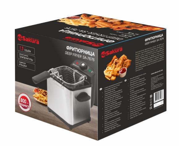 Мощность (Вт) 800, корзина для жарки с ручкой cool touch, съемная эмалированная чаша для масла 1,5 л, регулируемый термостат: 140 ~ 190 ℃, фильтр для устранения запахов, корпус из матовой нержавеющей стали, съемная крышка со смотровым окном, индикаторы питания и нагрева. Съемный погружной нагревательный элемент из нержавеющей стали, резиновый шнур питания длиной 0,9 м, 3* 0,75 мм2, 220v-240v ~50/60 гц.
