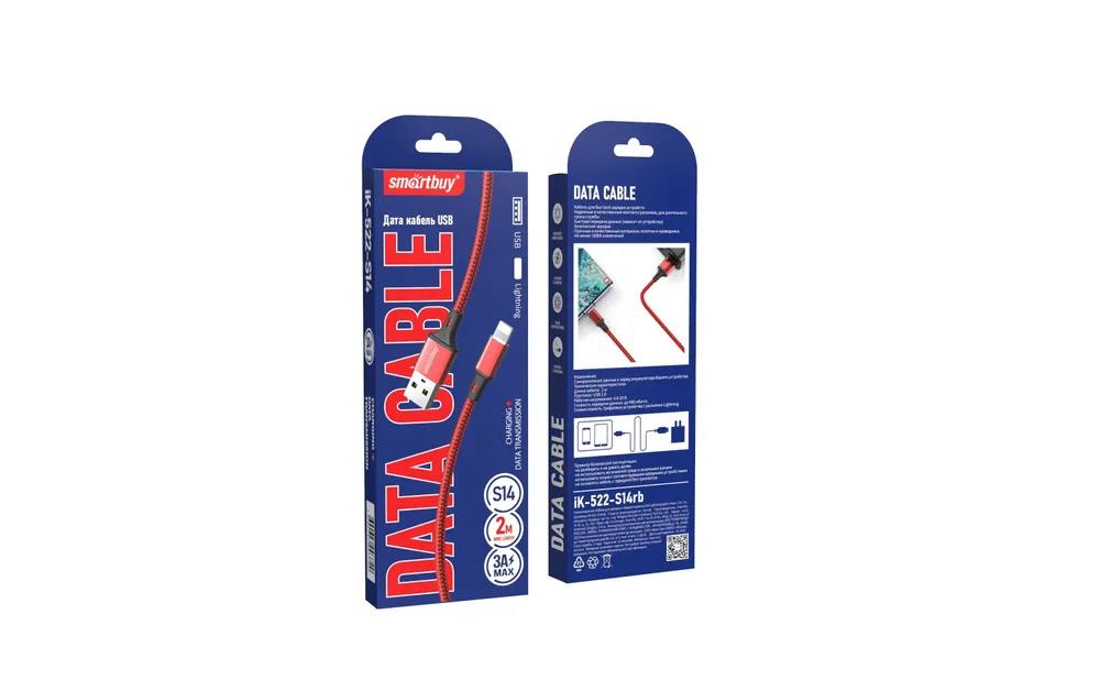 Кабель соединительный SmartBuy S14 (iK-522-S14rb) USB 2.0 A Lightning 8P красный, черный 2 м - Интернет-магазин Позитив: бытовая техника, электроника, товары для дома и др.