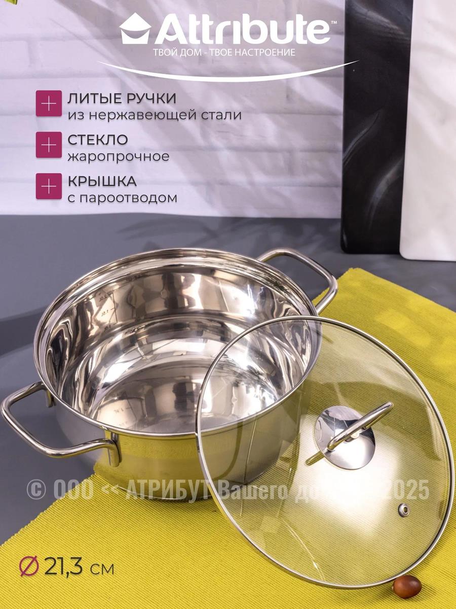 Кастрюля Attribute ASO020 OLIVIA (2,8 л ) - Интернет-магазин Позитив: бытовая техника, электроника, товары для дома и др.
