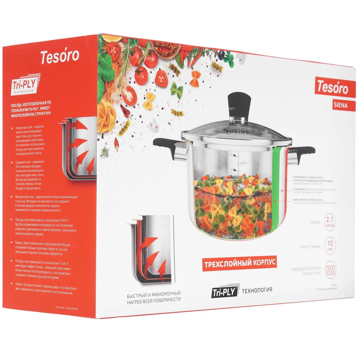 Кастрюля Tesoro Siena КС421 2,1 л (нерж. Сталь + стекл крышка) (2,1 л ) - Интернет-магазин Позитив: бытовая техника, электроника, товары для дома и др.