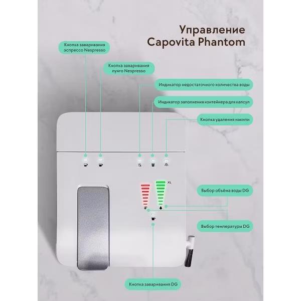 Кофемашина Capovita Phantom CN-ND0101 White (1500 Вт /20 бар/белый) - Интернет-магазин Позитив: бытовая техника, электроника, товары для дома и др.