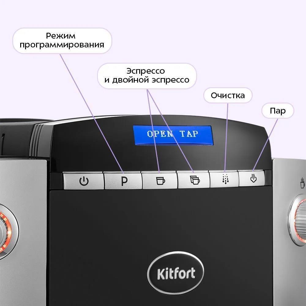 Кофемашина Kitfort КТ-7320 (1400 Вт /15 бар/серебристый, черный) - Интернет-магазин Позитив: бытовая техника, электроника, товары для дома и др.