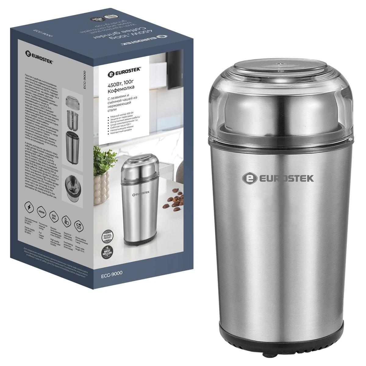 Кофемолка Eurostek ECG-9000 (100 г/450 Вт /стальной) - Интернет-магазин Позитив: бытовая техника, электроника, товары для дома и др.