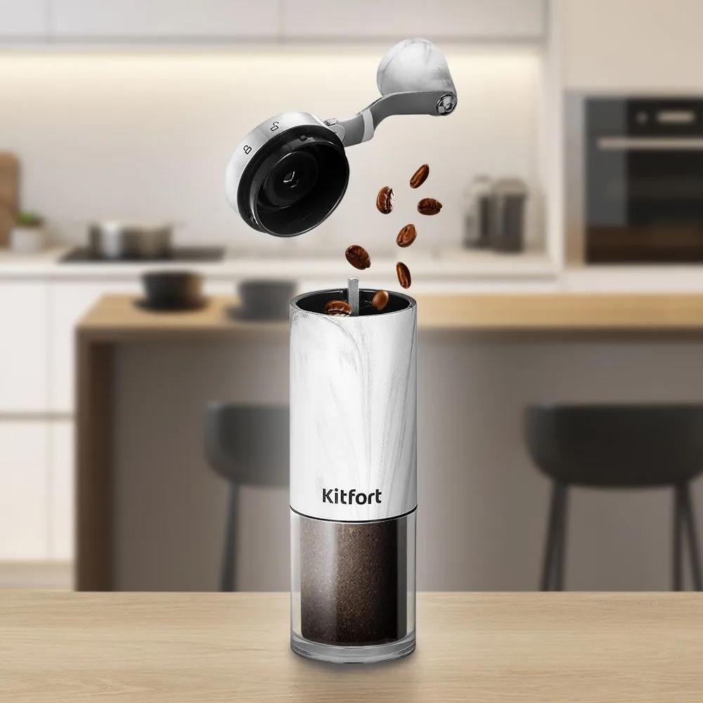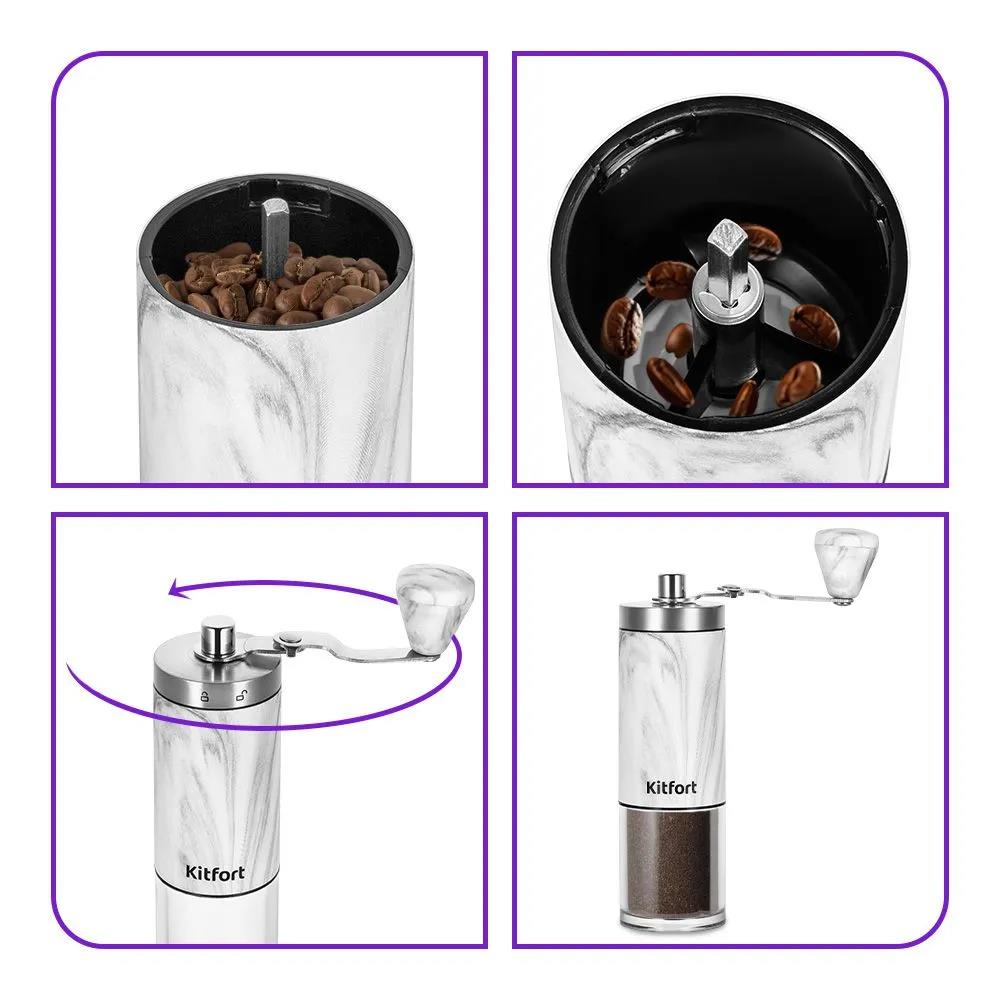Кофемолка Kitfort КТ-7471 ручная сист.помол.:жернова вместим.:25гр (25 г//серый, серебристый) Описание