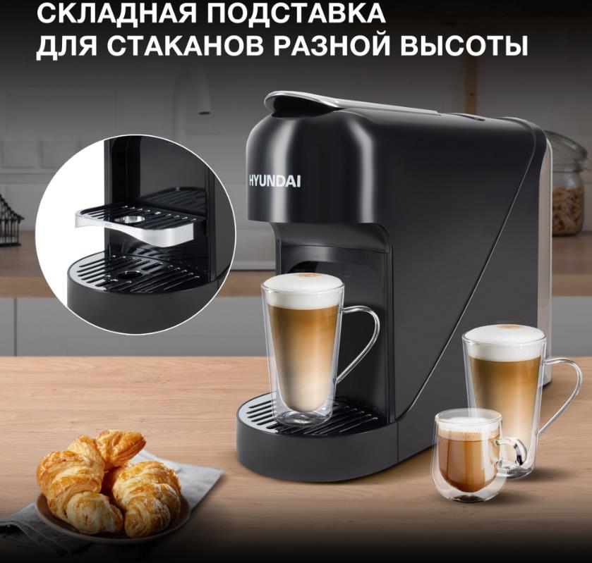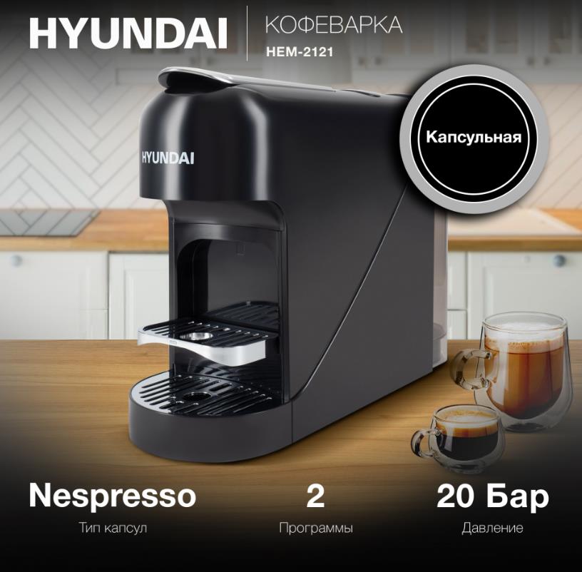 Кофеварка Hyundai HEM-2121 черный (капсульная/0,9 л /1400 Вт )
