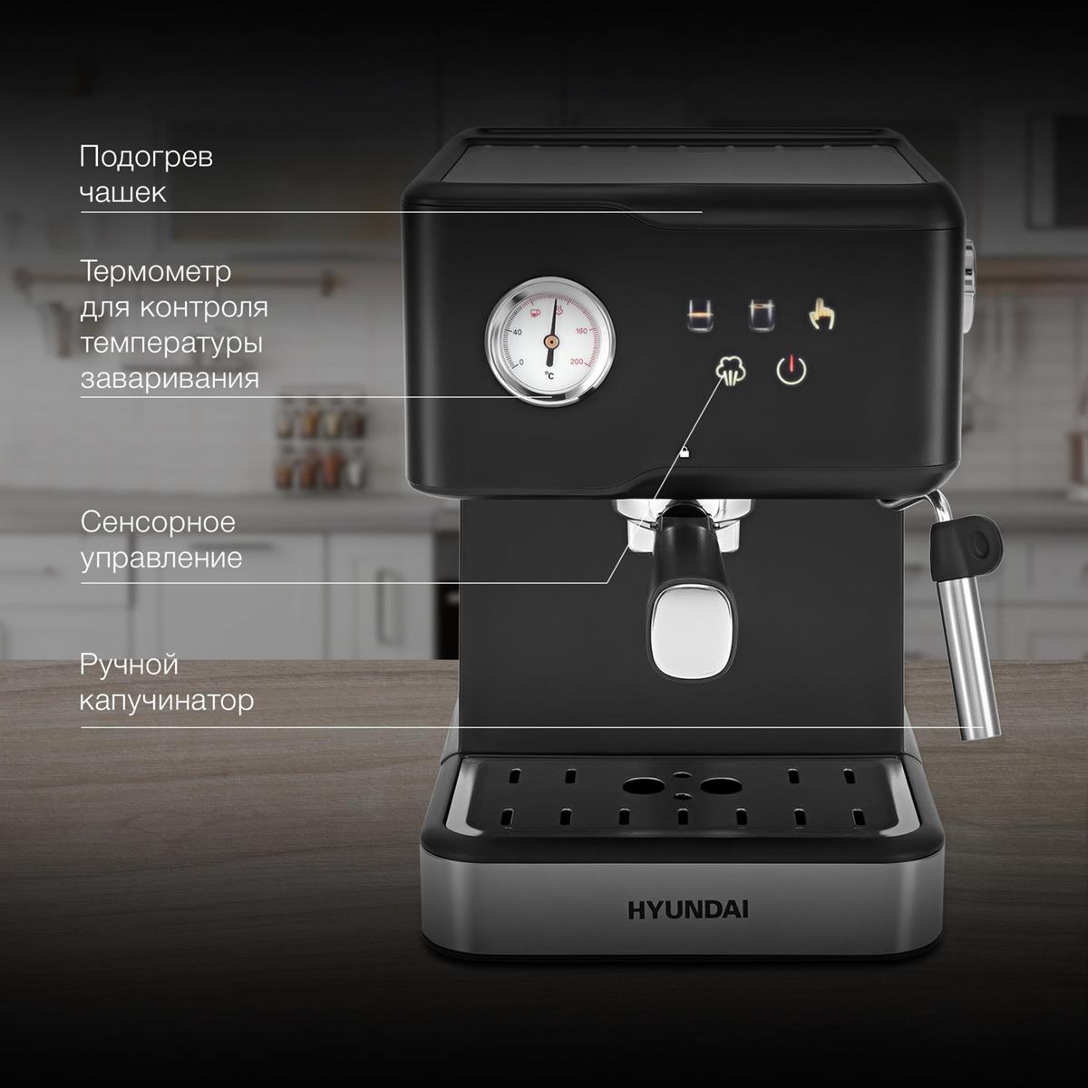 Кофеварка Hyundai HEM-4204 черный (рожковая//1000 Вт )