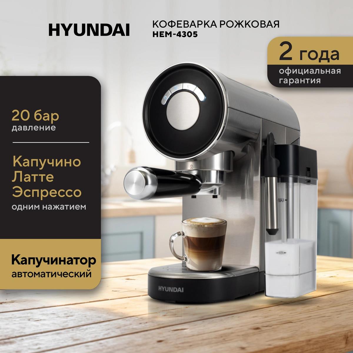 Кофеварка Hyundai HEM-4305 серебристый/черный (рожковая//1350 Вт )