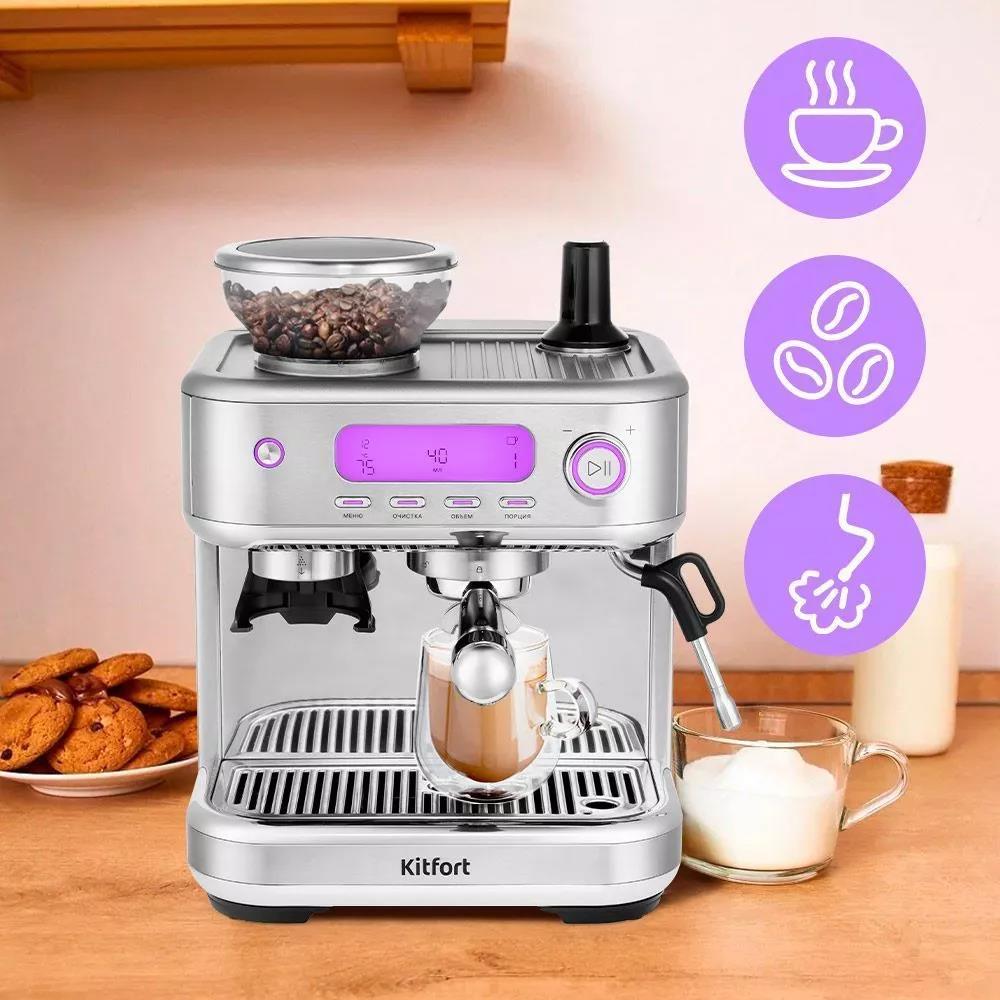 Кофеварка Kitfort КТ-7113 нержавеющая сталь (рожковая//1770 Вт ) - Интернет-магазин Позитив: бытовая техника, электроника, товары для дома и др.