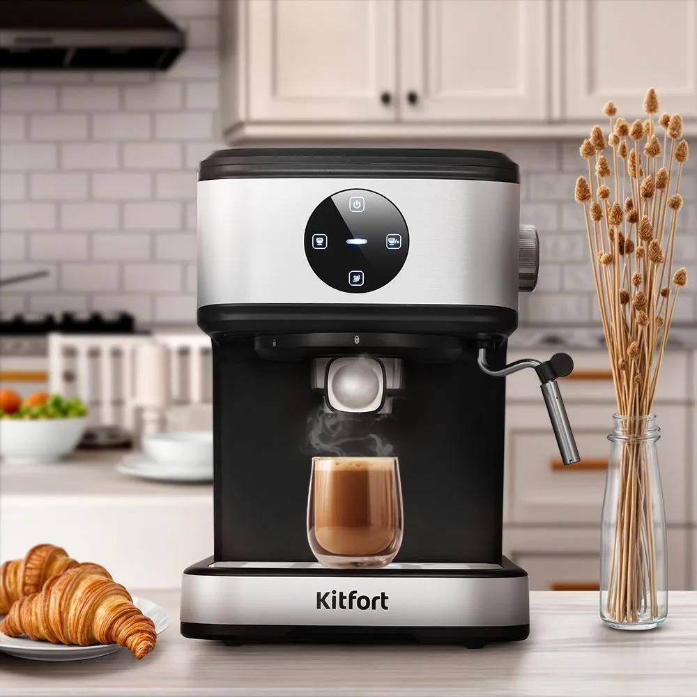 Кофеварка Kitfort КТ-7224 нержавеющая сталь/черный, исп. кофе - молотый, 1.5 л, 1100 Вт, 15 Бар. (рожковая/1,5 л /1100 Вт )