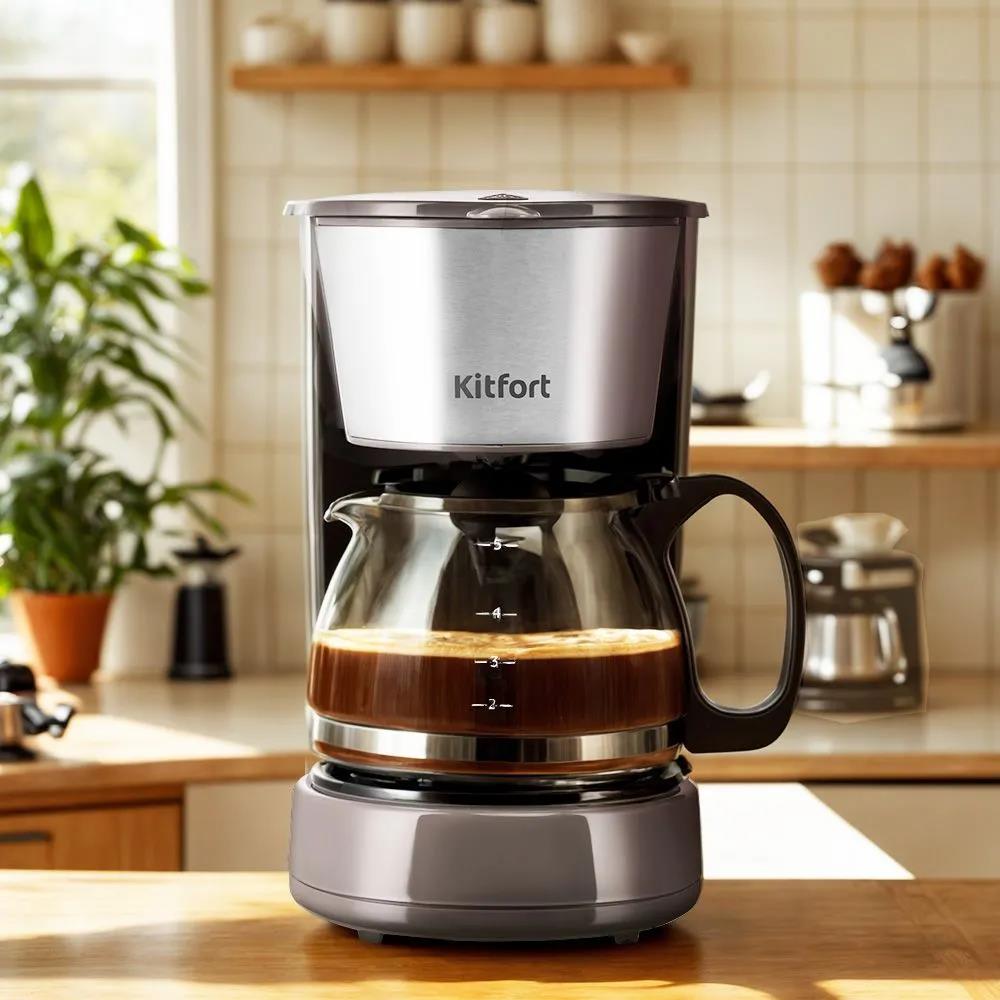 Кофеварка Kitfort КТ-7395 650Вт коричневый/серебристый (капельная/0,6 л /650 Вт ) - Интернет-магазин Позитив: бытовая техника, электроника, товары для дома и др.