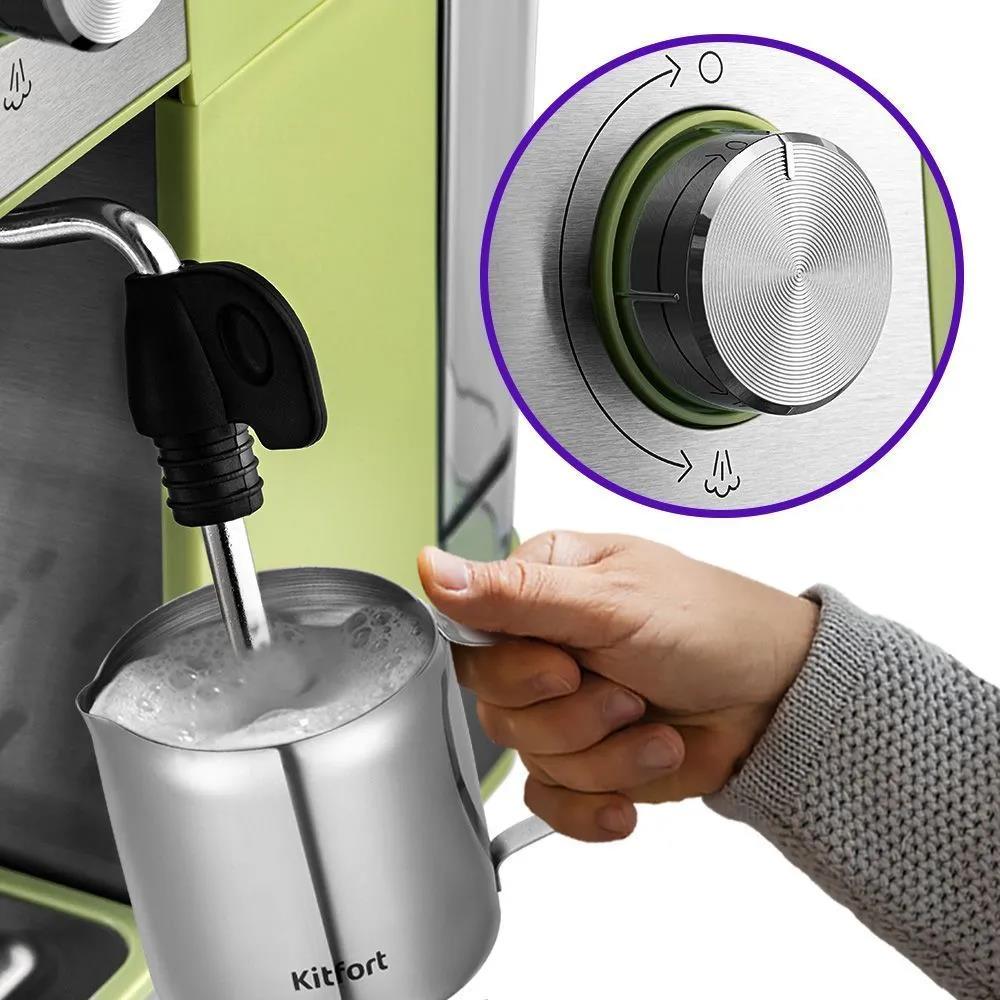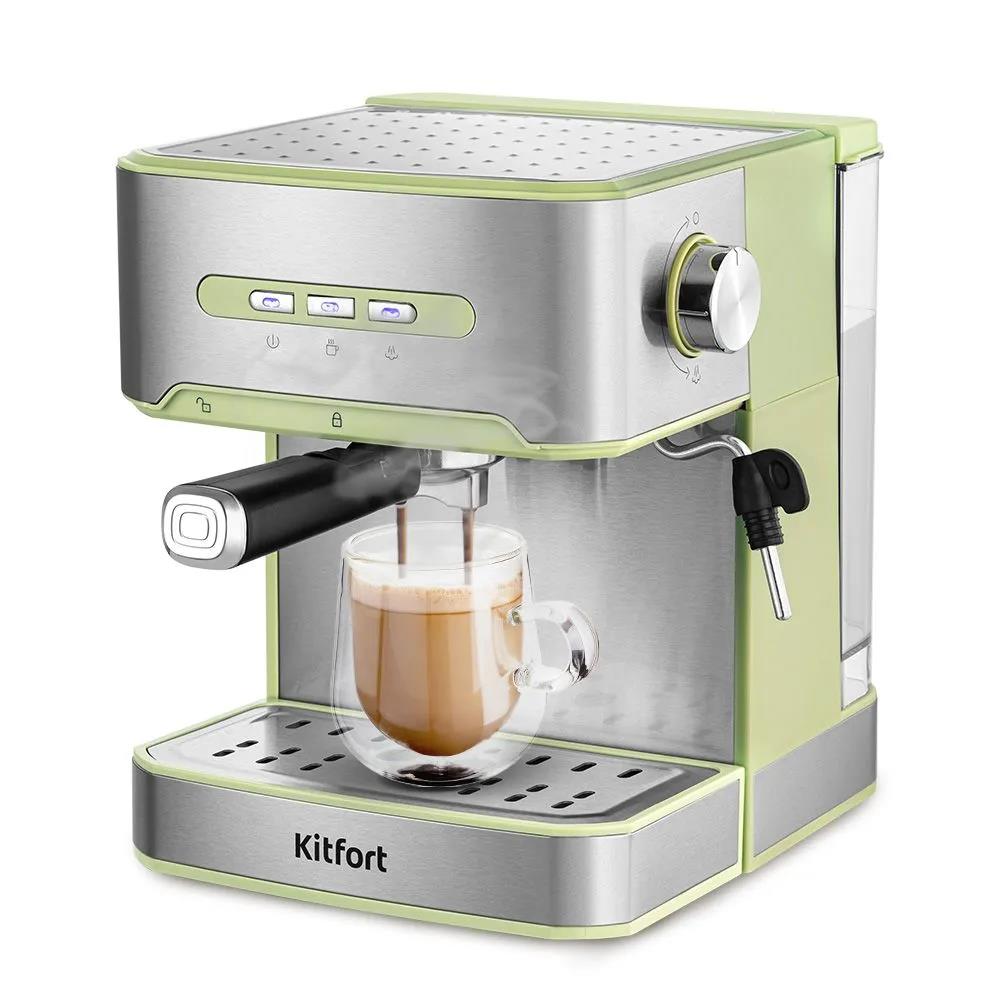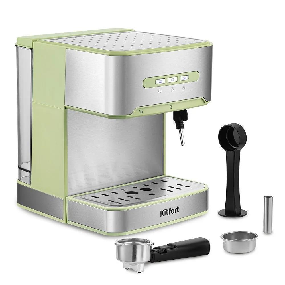 Кофеварка Kitfort КТ-7442 850Вт зеленый/нержавеющая сталь (рожковая/1,6 л /850 Вт ) - Интернет-магазин Позитив: бытовая техника, электроника, товары для дома и др.