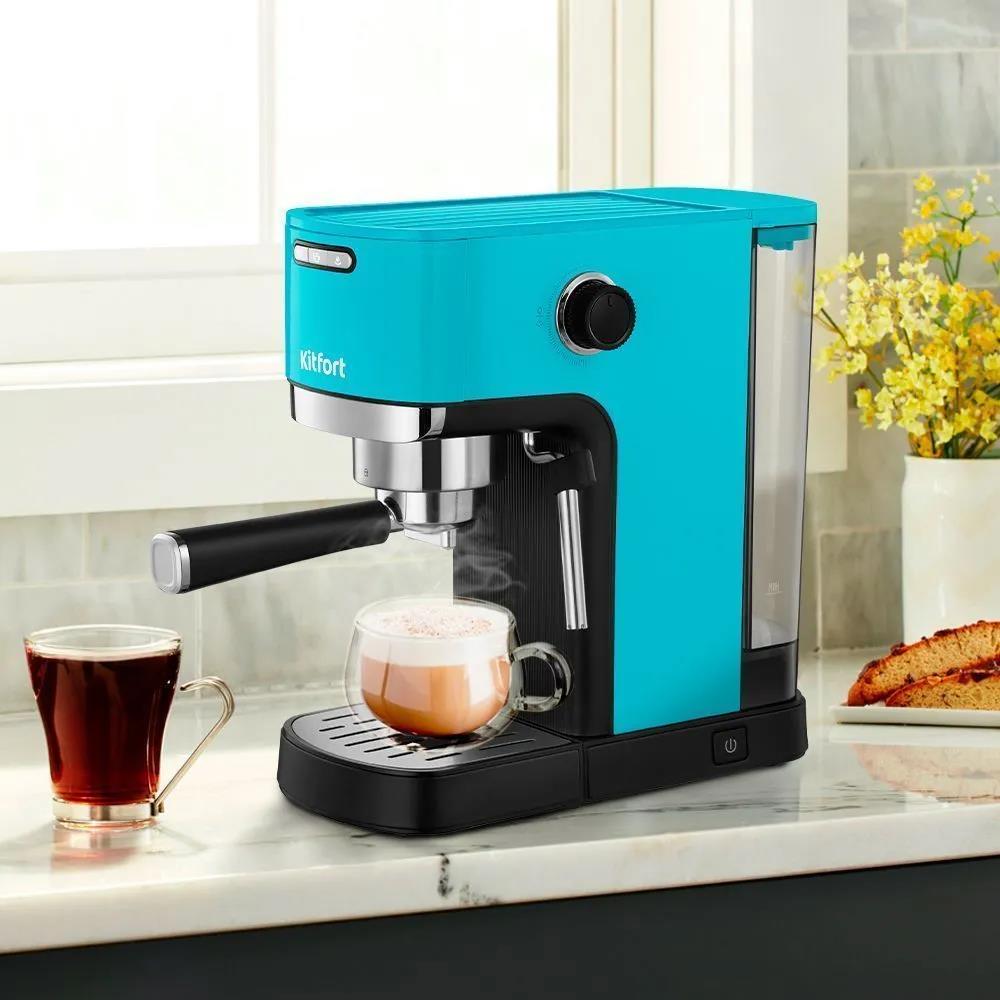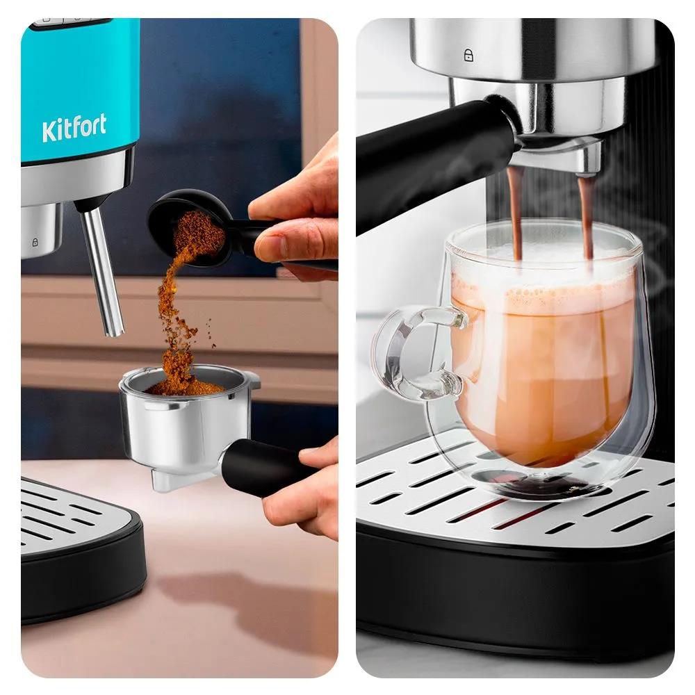 Кофеварка Kitfort КТ-7461 бирюзовый/черный (рожковая//1350 Вт )