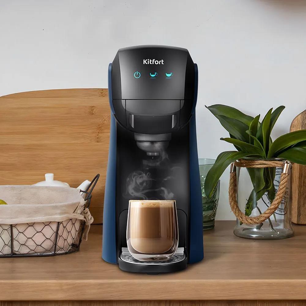 Кофеварка Kitfort КТ-7462 синий/черный (капсульная/0,85 л /1450 Вт )