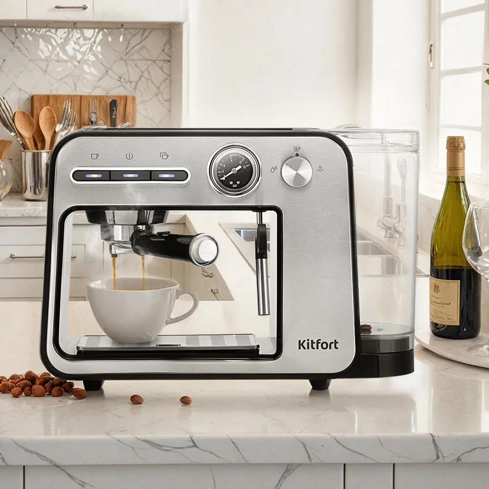 Кофеварка Kitfort КТ-7515 серебристый (рожковая//1450 Вт ) - Интернет-магазин Позитив: бытовая техника, электроника, товары для дома и др.