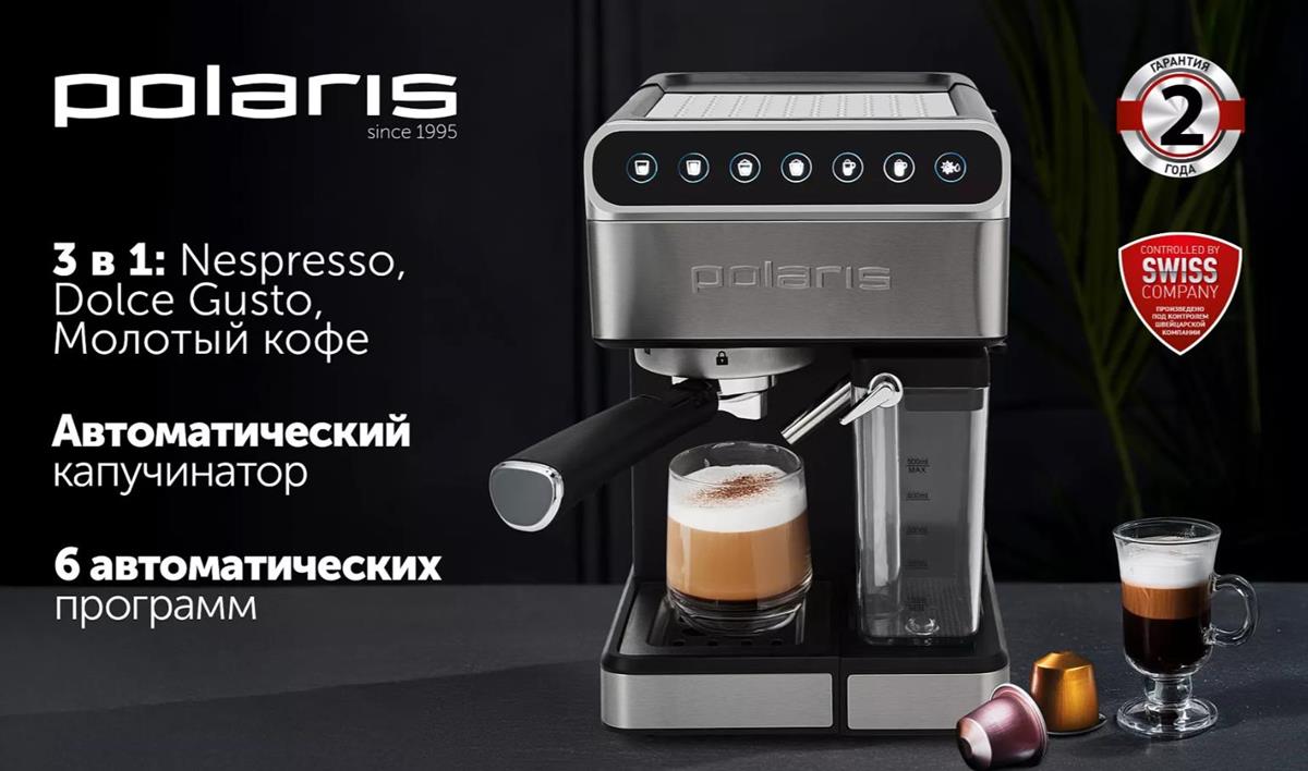 Кофеварка Polaris PCM 1535E черный/серебристый (рожковая//1400 Вт ) - Интернет-магазин Позитив: бытовая техника, электроника, товары для дома и др.