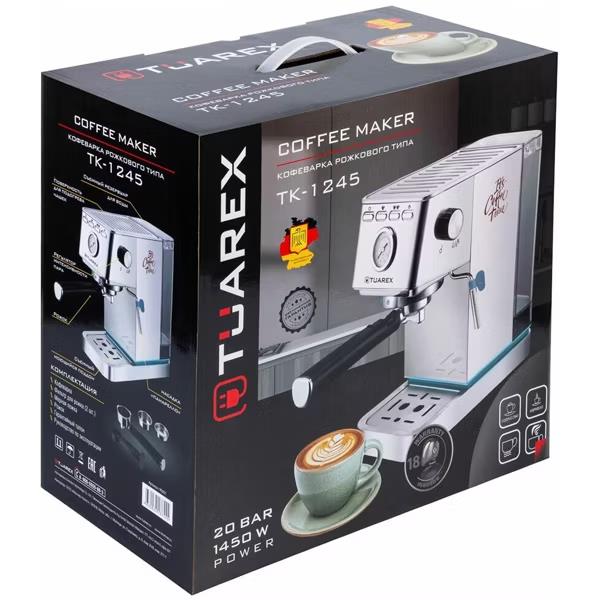 Кофеварка TUAREX TK-1245 серебристый/ серый (рожковая//1450 Вт ) - Интернет-магазин Позитив: бытовая техника, электроника, товары для дома и др.