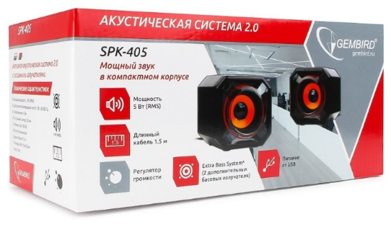 Gembird SPK-405 - стильные и компактные колонки с системой Extra Bass System - используются пассивные излучатели, которые значительно усиливают низкие частоты, что позволяет получить глубокий и насыщенный бас.