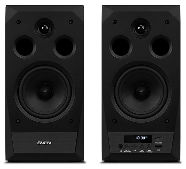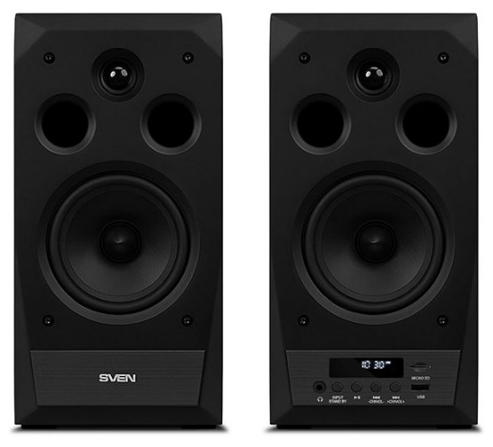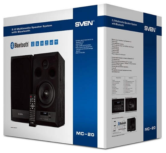 Колонки SVEN MC20 выполнены из MDF и совмещают в себе годами проверенные характеристики. Купольные динамики суммарной мощностью в 90 Вт, диапазон передаваемого звука от 40 до 27000 Гц, возможность регулировать раздельно высокие и низкие звуки позволяют получить насыщенную музыку. В качестве внешних накопителей в модели SVEN MC20 могут применяться microSD-карта, флеш-накопитель и FM-радиоволна, которая улавливается встроенным модулем. Если кто-то из семьи захотел побыть в тишине, то любитель музыки может воспользоваться наушниками, выход на которые предусмотрен на панели колонок.