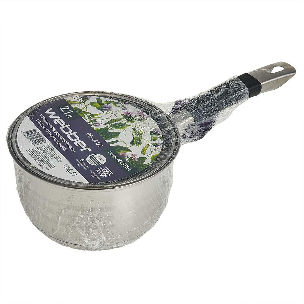 Ковш Webber BE-441/2 2,1л со стекл.крышкой, 16*9,5 см, нерж.сталь (2,1 л )