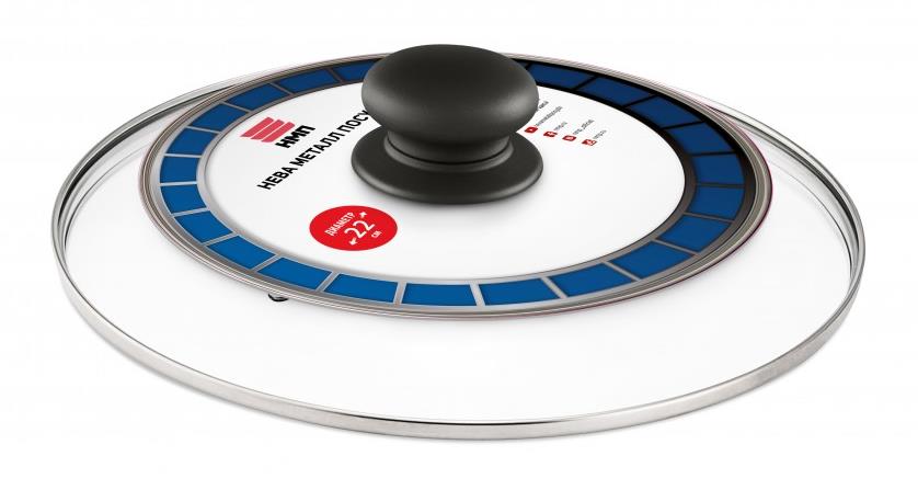 Крышка НЕВА МЕТАЛЛ ПОСУДА стекл. с метал. ободом 43022 22 см