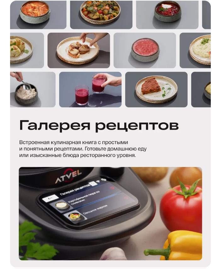 ухонный комбайн-мультиварка KitchenBot M5 — это полноценный кухонный робот, который заменит сразу несколько приборов для кухни и позволит вам готовить вкусно и быстро. Один KitchenBot совмещает функции мультиварки, мясорубки, миксера, блендера, тестомеса и пароварки. При мощности 1700 Вт и температурном диапазоне от 37 до 180 градусов он справится с задачами любой сложности. Весы с точностью измерения до 1 грамма позволяют соблюдать точные пропорции. Используйте KitchenBot каждый день и получайте идеальный результат одним нажатием кнопки. В памяти 22 автоматических режима на все случаи жизни: супы, каши, фарш, тесто и многое другое. Встроенная кулинарная книга содержит проверенные рецепты с пошаговыми инструкциями на экране, а также позволяет сохранять собственные уникальные блюда. С мобильным приложением управляйте устройством дистанционно, планируйте меню и создавайте список покупок прямо в смартфоне.