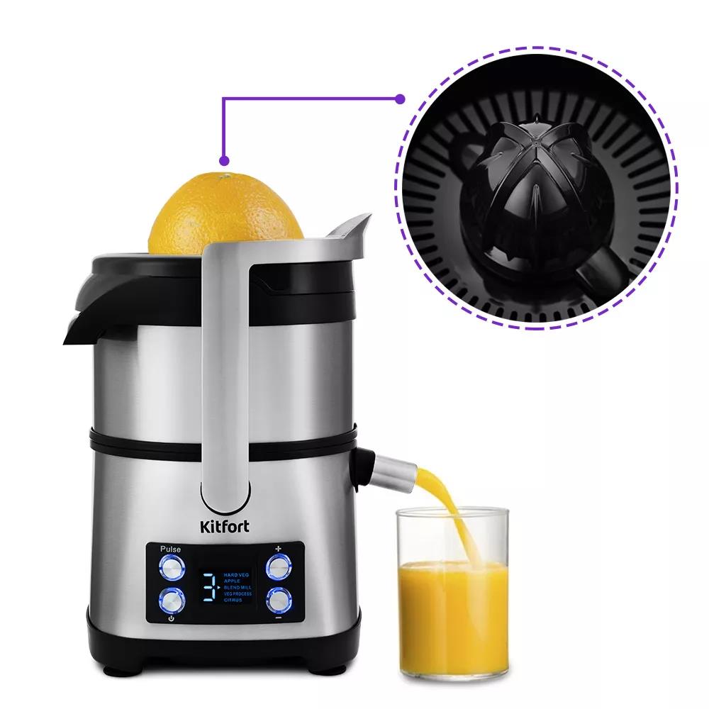 Кухонный процессор КТ-1395 сочетает в себе функции 11 устройств: тёрка, шинковка, соломорезка, блендер и кофемолка, центробежная соковыжималка и соковыжималка для цитрусовых, измельчитель для мяса, насадка для жидкого теста, насадка в виде ножа и мутовка.