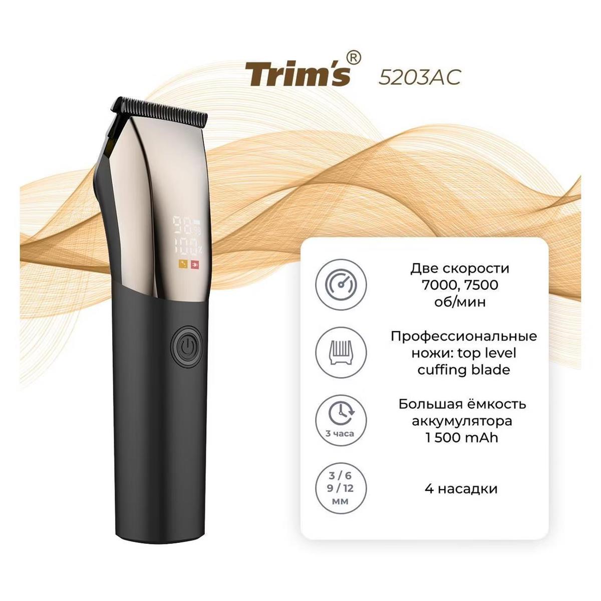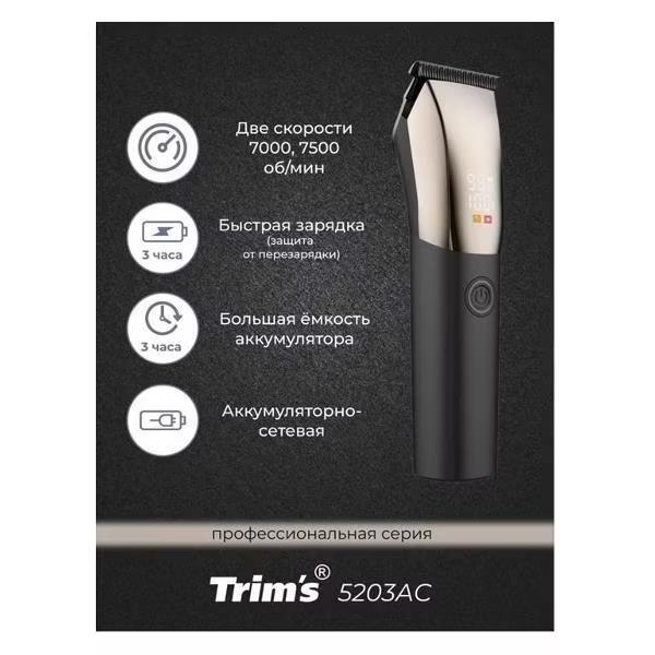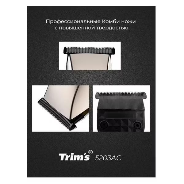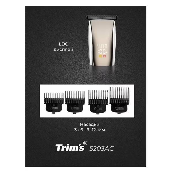 Машинка для стрижки волос, бороды Бердск TRIMS 5203АС (Обновленный дизайн), черный, платиновый