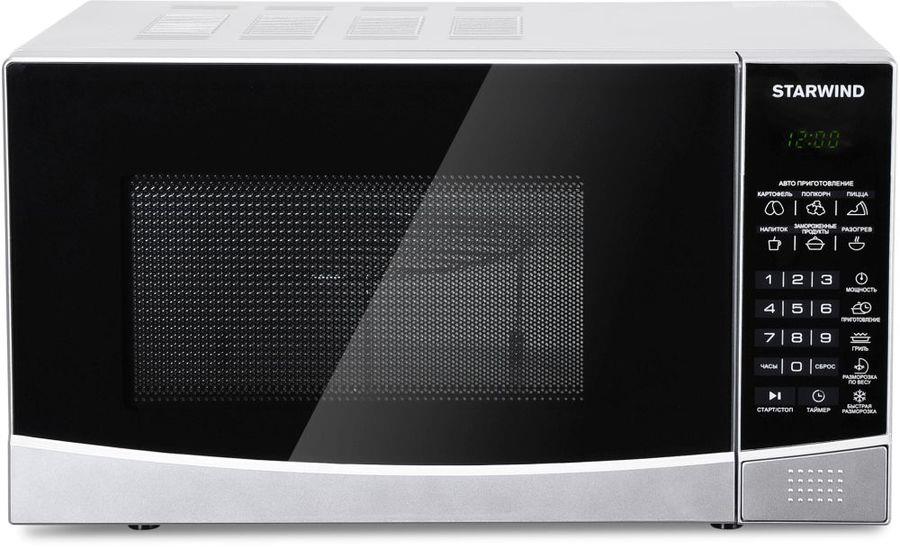 Классический дизайн микроволновой печи STARWIND SMW2820, выполненный в элегантном сочетании черного и серебристого цвета, идеально впишется в интерьер любого помещения, а небольшие габариты существенно увеличат диапазон возможных мест для ее установки. Микроволновая печь – незаменимый помощник для любой хозяйки. В ее функции входит не только разогрев продуктов до нужного состояния. Но и приготовление пищи. В микроволновке очень можно приготовить практически любое блюдо. Однако перед ее использованием необходимо прочитать инструкцию по эксплуатации, которая поможет разобраться, какие блюда, и в каком режиме нужно готовить. STARWIND SMW2820 с электронным управлением обладает мощностью в 700 ватт. На передней панели устройства расположены сенсорные клавиши, снабженные поясняющими иконками. Управлять этой моделью при помощи интуитивно понятного интерфейса будет просто для любого пользователя. Дверца печи выполнена из жаропрочного стекла, предотвращающего нагревание внешних поверхностей. В центре дверцы находится специальное окошко, позволяющее наблюдать за процессом приготовления. Открытие дверцы осуществляется при помощи специальной клавиши, находящейся в нижней части рабочей панели.