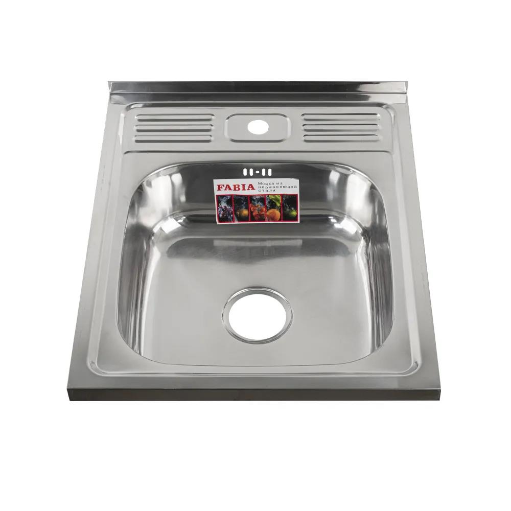 Накладная мойка FABIA из нержавеющей стали толщиной 0,6 мм – отличный вариант для кухни , она прослужит многие годы. Классическая форма и хромированный цвет гармонично впишутся в любой интерьер и никогда не выйдут из моды. Оптимальный размер 50х60 см с площадкой для посуды и глубиной 160 мм позволяет свободно помыть посуду, без страха её разбить. Мойка устанавливается на тумбочку. Практичная площадка, расположенная по центру , даёт возможность вмонтировать любую понравившуюся модель смесителя.