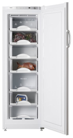 Морозильный шкаф ATLANT М 7204-100 быстро заморозит и надолго сохранит продукты свежими. При своих габаритах 176.2х59.5х62.5 см модель не выглядит массивной. Внутренний объем камеры — 227 л, что позволяет хранить в морозильном шкафу большой запас продуктов. Для удобства морозильный шкаф имеет семь отсеков с выдвижными ящиками из прозрачного пластика, что позволяет видеть содержимое. Удобство при эксплуатации товара для потребителя предоставляет возможность изменения стороны открывания двери оборудования. Мощность замораживания морозильного шкафа ATLANT М 7204-100 поможет качественно заморозить до 24 кг в сутки. При аварийных ситуациях на протяжении 19 часов в устройстве поддерживается установленная температура, позволяющая хранить продукты. Продукты, помещенные в шкаф при включенном режиме суперзаморозки, моментально охлаждаются и замораживаются, не отдавая тепло уже замороженным продуктам. Активный индикатор включения уведомит о рабочем состоянии морозильного шкафа.