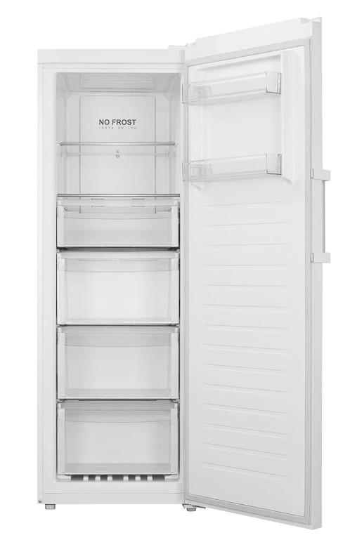 Новинка! Морозильная камера с функцией без наледи в морозильной и холодильной камерах Total No Frost — убережет продукты от инея и наледи, а владельца — от ручного размораживания морозилки. Камера высотой 170,5 см вмещает полезный объем до 285 л, на двери предусмотрен информативный светодиодный дисплей с возможностью регулировки температуры от −24 °C до 4 °C (технология Insta Switch), что позволяет использовать эту морозильную камеру и в качестве холодильника, а также при покупке двух приборов и соединительного элемента — как европейский side-by-side с общим объемом 570 л. Внутри морозильной камеры предусмотрены 4 бокса разного объема, две полки наверху, две полки на двери. Для удобства использования в морозильной камере предусмотрено верхнее светодиодное освещение. Цвет камеры — белый, дверная ручка перенавешивается.
