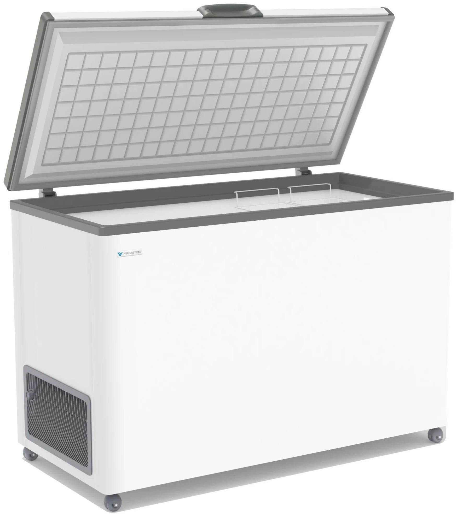 Морозильный ларь Frostor F 400 S с глухой крышкой – это идеальное хранилище большого количества продуктов, требующих заморозки. Минимальная температура внутри ларя составляет -22 °С. А внутренняя камера может вместить в себя до 268 л. При этом морозильный ларь является очень экономичным в плане потребления электроэнергии (класс A). Для оптимального размещения продуктов внутри морозильного ларя предусмотрены две подвесные корзины. Разморозка морозильной камеры осуществляется вручную. Морозильный ларь Frostor F 400 S обладает оптимальными размерами – 120х84х60 мм, что позволяет с удобством размещать его в подсобном или кухонном помещении. Корпус ларя выполнен из металла и окрашен в белый цвет. При загрязнениях морозильный ларь очень легко отмывается. Для создания внутри ларя минусовой температуры используется хладагент R134а.