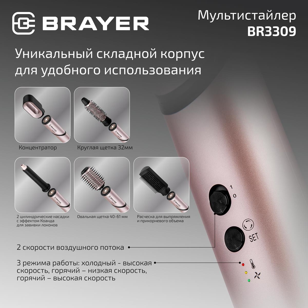 Мультистайлер Brayer BR3309 (1500 Вт /розовый)