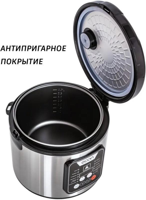 Стильная и функциональная мультиварка с электронным управлением ECO 50MC облегчит труд каждой хозяйки и украсит собой пространство любой кухни. Чаша объемом 5 литров с антипригарным покрытием очень удобна для приготовления самых различных блюд. В мультиварке установлено 12 авто программ и предусмотрено много полезных функций. Вы сможете приготовить суп или бульон, плов, рис или крупы, любую выпечку, пасту или макароны, йогурт, молочную кашу и еще массу различных мясных и овощных блюд с программами варка на пару, тушение, жарка и запекание.Также доступна очень полезная программа Мой рецепт, которая позволяет настроить приготовление блюд в 3 этапа, установив для каждого температуру и время. Общее время приготовления по этой программе может составлять до 16 часов. В комплекте поставляется специальный контейнер для приготовления на пару. В модели также предусмотрена функции поддержания тепла и отложенного на 24 часа старта. Размер 270 на 260 на 285 мм, длина шнура 1 м, мощность 900 Вт.